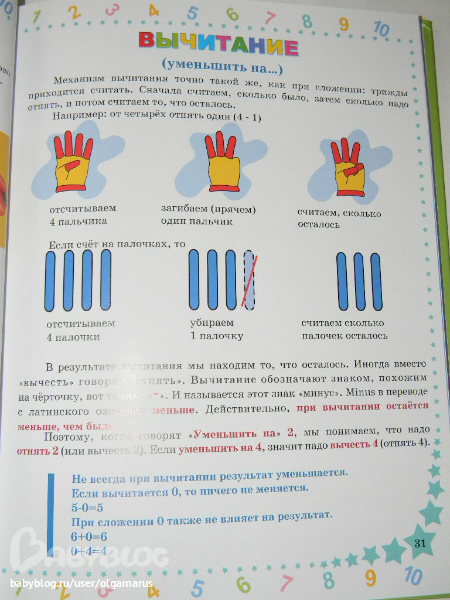 чень хорошая подборка примеров, поэтапно расписано обучение, всё очень наглядно и понятно, построенно от простого к сложному. Тут вы найдете «Счет чисел от 1 до 10» и "обратный счет" и примеры по "сложению и вычитанию", «Наглядные задачи», «Решение задач», «Слагаемое, сумма», «Уменьшаемое», «Вычитаемое. Разность», «Более сложные примеры», «Считаем до 20». в общем полноценные занятия для детей старше двух и до 5 ти - 6 ти лет. Конечно большим минусом считаю чересчур яркие компьютерные рисунки (которые кстати в отзывах все почему то очень хвалят) и жутко пестрый фон, это по моему очень отвлекает ребенка, но тут можно материал как основу брать и обыгрывать всё по своему, так как материал ну очень хороший. А вот так мы занимаемся