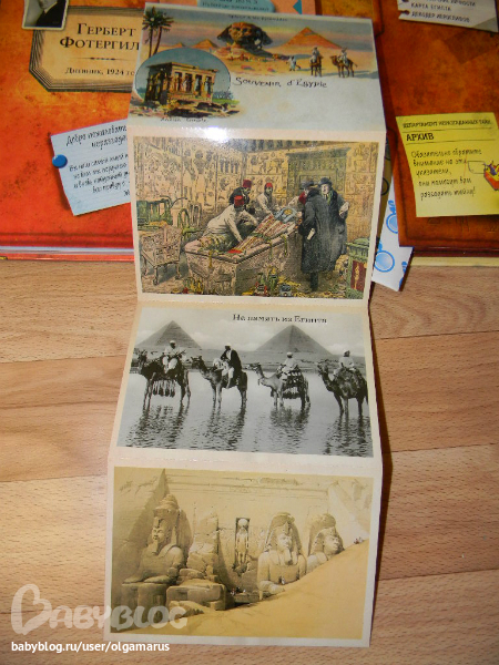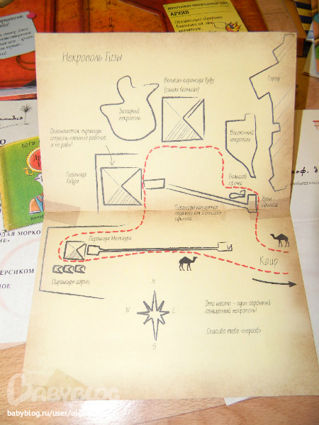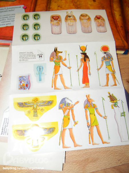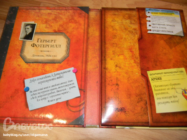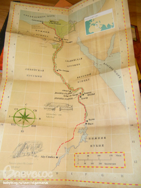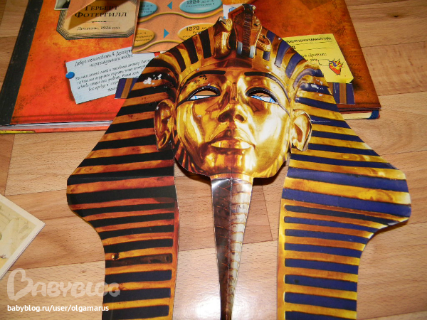 Эту книгу мы с мужем разглядывали как маленькие дети в таком восхищении, сколько там всего и карты и маска Тутанхамона (которую сынок успел примерить и себе и нам)), разные открытки и фотографии, расшифровки, в общем, для детей клад не книга, я в детстве, очень увлекалась темой Египта ,поэтому была бы очень рада такой книге. Представляю, с каким интересом и восхищением её будет разглядывать Саша когда подрастет. Книга выполнена в виде дневника, да у нас есть похожая, книга тоже очень красивая я про нее писала (Египтология). Но и эта не будет у нас лишней:) Думаю подойдет ребенку лет с 6 ти, информативности в книге не много это больше книга игра для того что бы вызвать интерес к изучению истории у ребенка. Книга будет и прекрасным подарком.