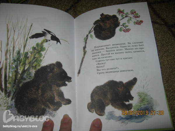 Иллюстрировал книгу сам Чарушин. На мой вкус, картинки очень соответсвуют тексту. Их много - на каждом развороте. Рассказы не большие. Главные герои маленькие зверята. Они шалят и не слушаются также как и наши дети)))) Возможно, поэтому эта книга нашла такой отклик у моего непоседливого мальчика. Он живо ассоциирует поступки котенка Тюпы или щенка Томки с собой.Мне кажется, читая ребенку, такую книгу, мы невольно учим их быть добрее и терпимей. Лично мое мнение, что подобная литература должна быть в домашней библиотеке каждого.Цена у книжки не очень высокая, но читаться она, думаю, будет достаточно долго.