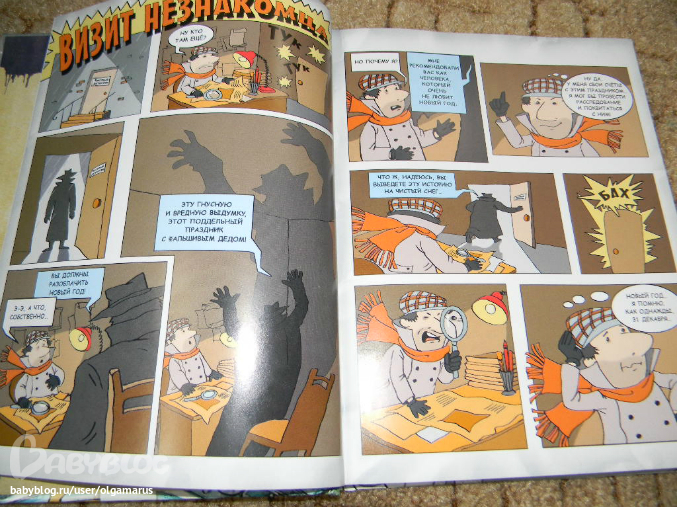 Итак, начинается книга с небольшого комикса, частному детективу поручают разоблачить новый год. Детектив составляет план по разоблачению: