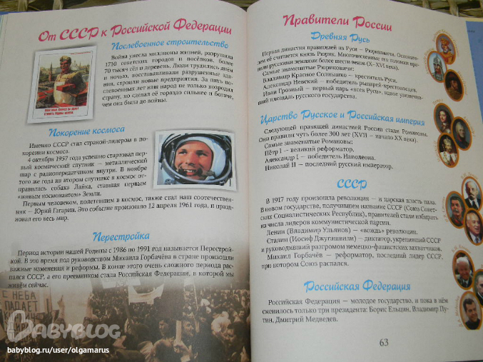 7) Ну а далее немного исторических сведений о Древних славянах, реформах Петра 1, Отечественной войне 1812 года, ВОВ, космонавтах, перестройке и т.д.