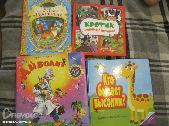 Сказки Пушкина, Кротик, музыкальная книга "Айболит" (в свое время моим спасением была, особенно в машине) и книга с разворотами (нижняя справа):