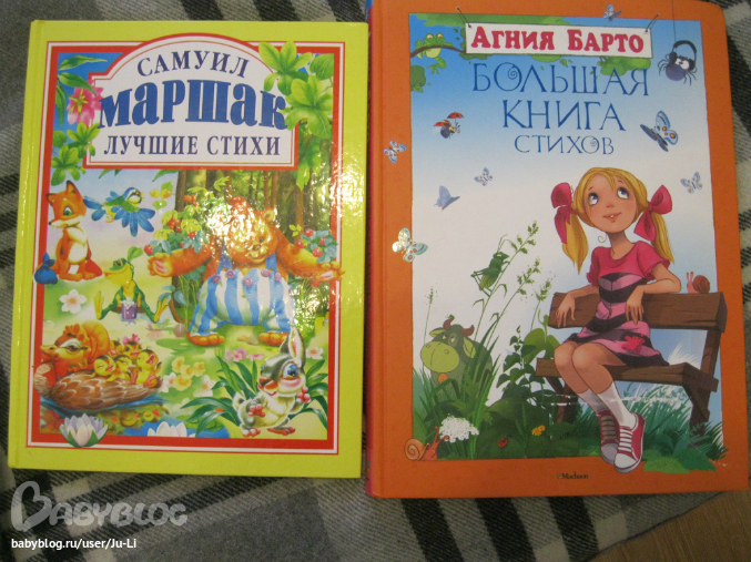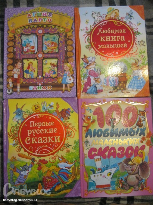 Еще стихи Барто (очень красивые рисунки, некогда было сделать фотки), и сказки-сказки. Их у нас много. Последняя-удачная очень, рисунки как из мультика, много-много. Я бы сказала, что это книга с рисунками, которые внизу подписаны))