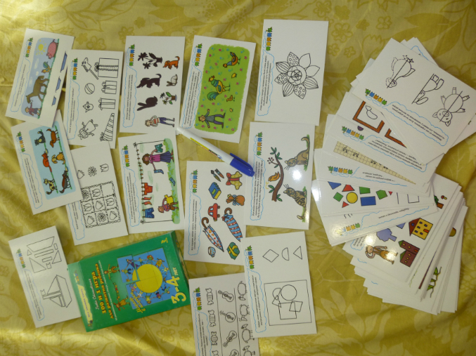 В первых четырех книжечках в черхнем ряду идет история, а потом несколько увлекательных заданий-раскась картинку по образцу,найди лишнюю картинку,найди отличия,каждому кусочку картины найди свое место...