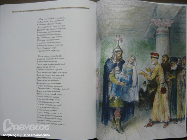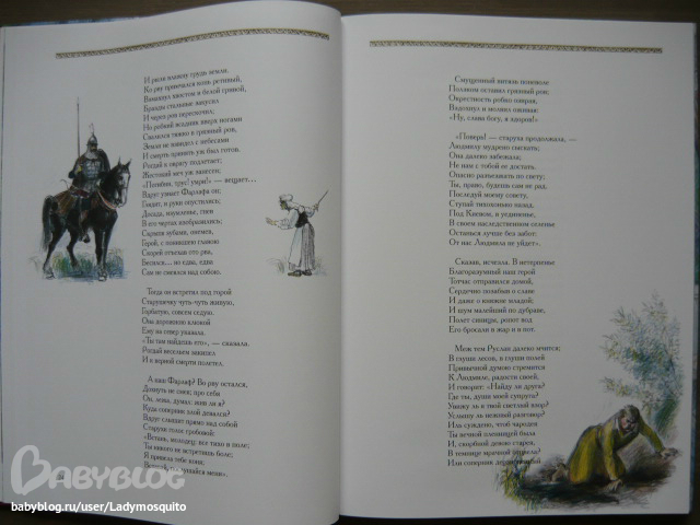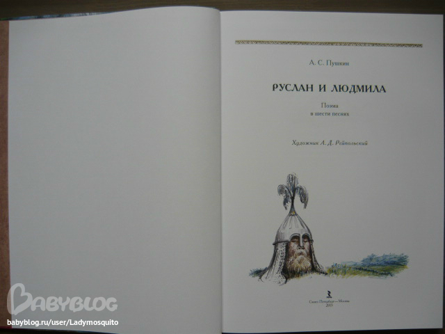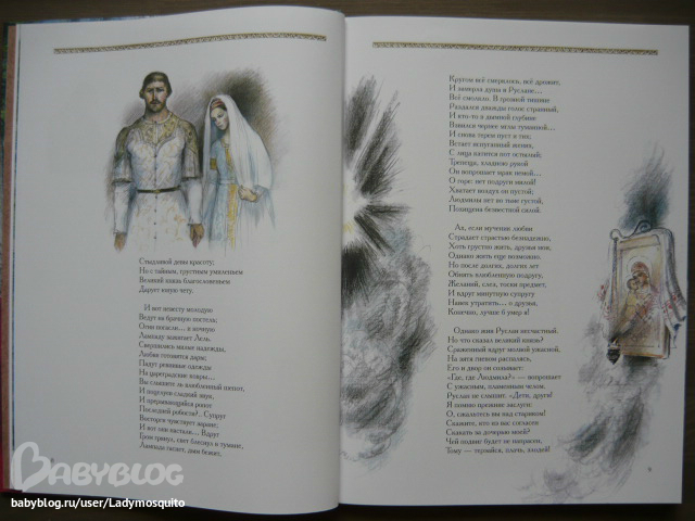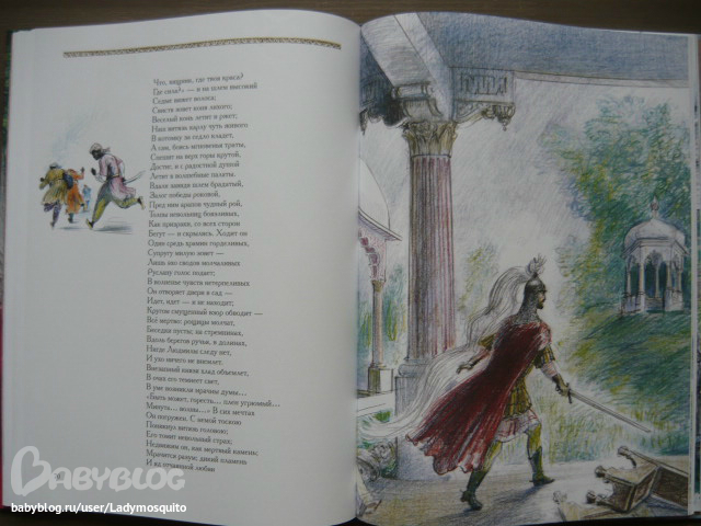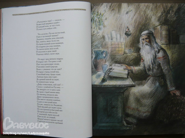 Средним и старшим школьникамПривез мне сегодня курьер мою книжечку, и, надо отметить, она значительно выделялась в заказе размерами. Больше всех книг оказалась. И больше всех порадовала. Конечно, у меня есть уже Русланы и Людмилы, но эта книга будет особняком (по размеру, в том числе). Её даже сравнить невозможно с другими. Потому, что все Русланы мои, да и Людмилы - шедевральны. Рейпольский же отличается особой нежностью и романтичностью. И как мне нравятся его карандашные иллюстрации, даже совсем не понимающий ничего в иллюстрации человек сразу поймет - это действительно настоящие рисунки, сделанные мастерской рукой.