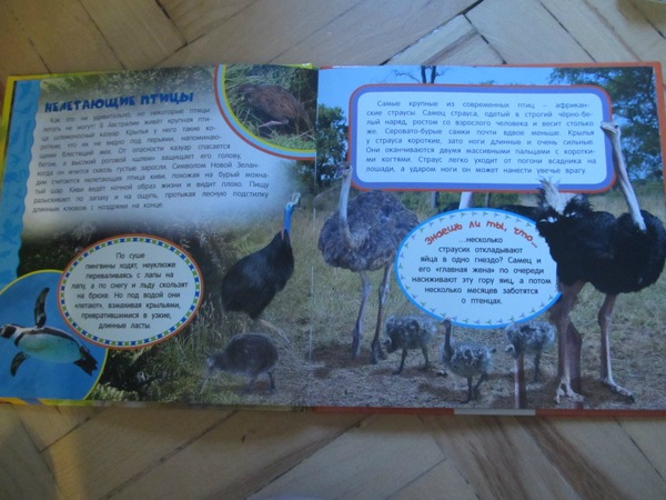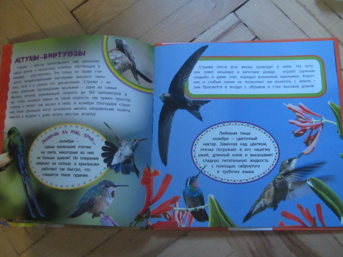 Хорошая энциклопедия. Но мы пока со Степой ее не особо читали, думаю она лет от 5-6. Только отдельные страницы просмотрели, очень ему картинки с крыльями понравились. Но для цены меньше 100р книга просто великолепная, бумага глянцевая, фотографии очень красивые, текст интересный и познавательный.