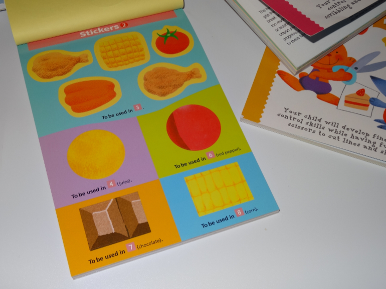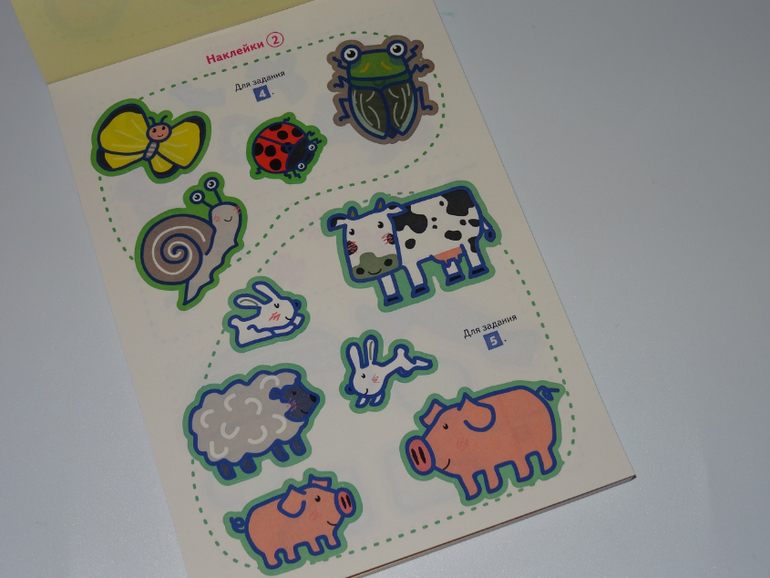 Повторю абзац из предыдущей книжки с наклейками ))) Далее уже родителям предложено отрезать самим детальки. Это мне не очень понравилось. Зная Диму, он тут же кинется мне помогать, а для него все эти изгибы/кругляшки еще сложноваты...