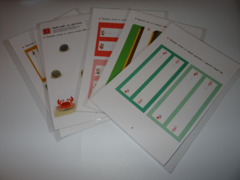 Я просто вырезала странички и заламинировала. Берем маркер на водной основе (это важно,а то сначала мы взяли перманентный :))) и упражняемся пока он не высохнет )) Заданиям ничего не будет. Вот с такими оговорками эти тетради и начали мне нравиться.