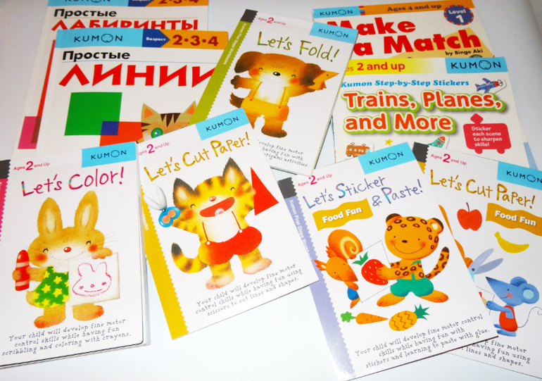Конечно, это все не про Kumon, где сложностей перевода по идее быть не должно. Но несколько месяцев назад я страдала от отсутствия на нашем рынке таких материалов для двухлеток. Проводить линии и проходить лабиринты (а их можно найти в наших переводных изданиях Kumon 3+) Дима наотрез отказывается, так что недолго думая я заказала себе 3 основные книжки и несколько дополнительных, которых в России пока нет, о них ниже. Названия кликабельны.
