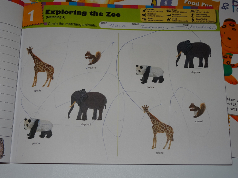 Вообще, откровенно говоря, все мои претензии к серии "Первые шаги" это претензии мамы ребенка, которому год и десять, а не 2 and up, как заявлено на обложке. Естественно, он может справиться с первой парочкой страничек, а мне-то хочется большего. Так что книги хорошие и для нас все же необычные, из-за чего я за ними и побежала на иностранный сайт =) На мой взгляд, не стоит ждать с приобретением, если вашему малышу еще нет двух. Как раз в этом случае,он будет пыхтеть/сопеть и все делать постепенно, и не будет соблазна выполнить все за один раз. Насколько я поняла из постов единомышленников, у деток постарше он есть. Так что медленно, но верно.