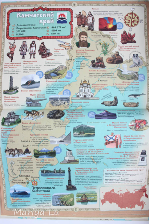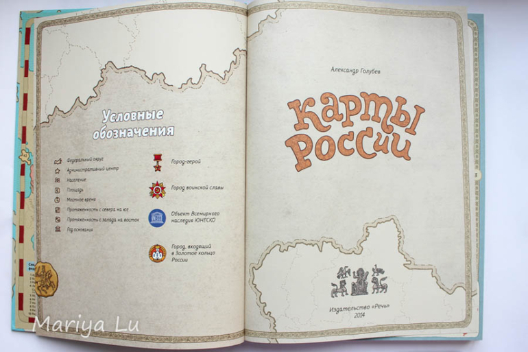 Дошкольникам и младшим школьникамКарты..... Наверное у меня детская нереализованная мечта иметь кучу красивых иллюстрированных атласов,карт. Как иначе объяснить мое благоговение перед этой чудесной книгой? Придя к нам в дом, она завоевала сердца каждого,кто ее коснулся. Чувствуется,что книга родилась в любви к своей стране.