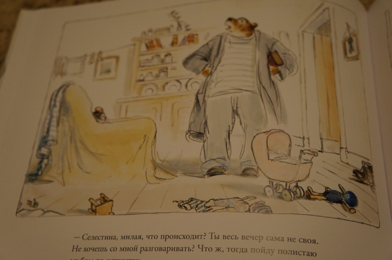 Такие нежные и выразительные рисунки не нуждаются в длинных текстах. Иллюстраций очень много, в основном они на полную страницу. но и очень много полноразмерных на целый разворот. Картинки очень красивые, четко прорисованы все детали и черточки, выражены все эмоции и капризы маленькой Селестины.
