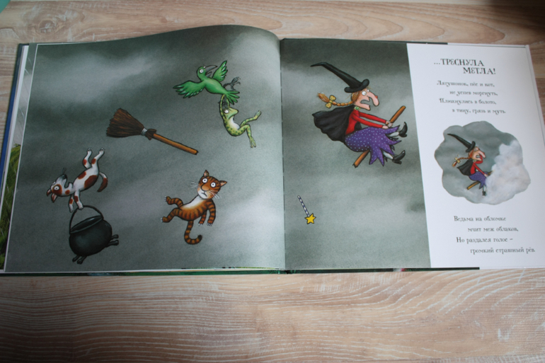 Детский хоррор,не иначе) Но маленький человек не испугается,тут все по-доброму. Смешная ведьма,приходящие ей на помощь звери,волшебство и конечно заклинание есть.