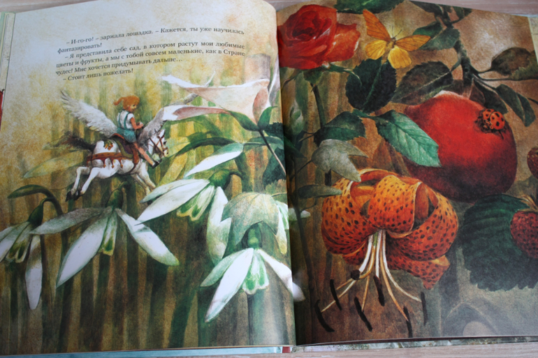 Иллюстрации Ингпена очень взрослые,текст Вестерлунд ,заставляющий поразмышлять. Покупала с целью,чтоб были в доме высокохудожественные книги,воспитывающие эстетический вкус,и не ожидала,что 3х-летка полюбит.Рассказ о том,что если книги перечитывать,можно увидеть в них совсем не то,что увидел в первый раз при прочтении.Полет фантазии уносит девочку,которой было уже нечего читать,на волшебной карусели в воображаемое путешествие.