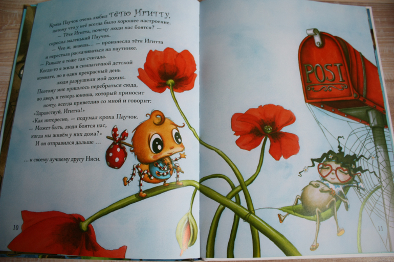 Книга к Хэллоуину,и не только,можно в тему насекомых отнести,а можно в тему непохожести на других. Паучок переживает,почему люди его бояться и с этим вопросом приходит к своим друзьям и родственникам,получает варианты ответов и делает вывод,что бояться того,с чем не знакомы,а стоит познакомиться,узнать поподробнее и страх пройдет.