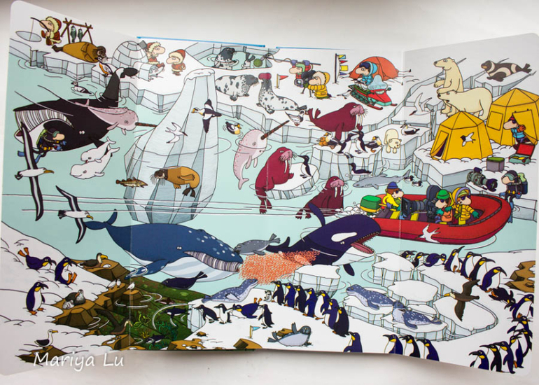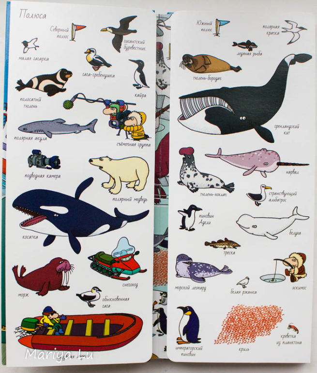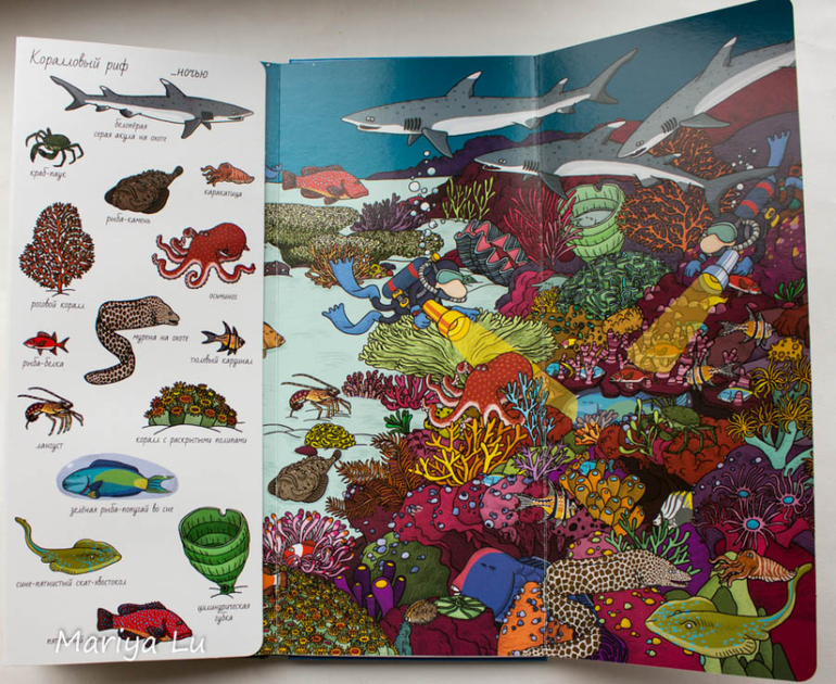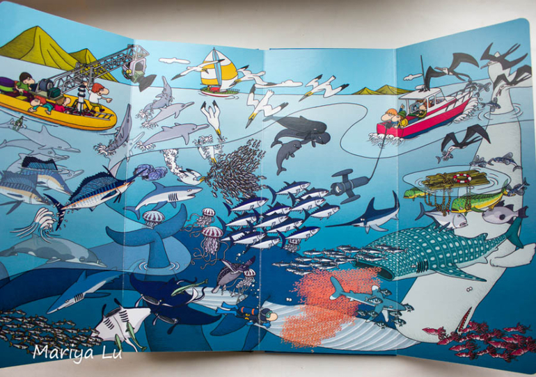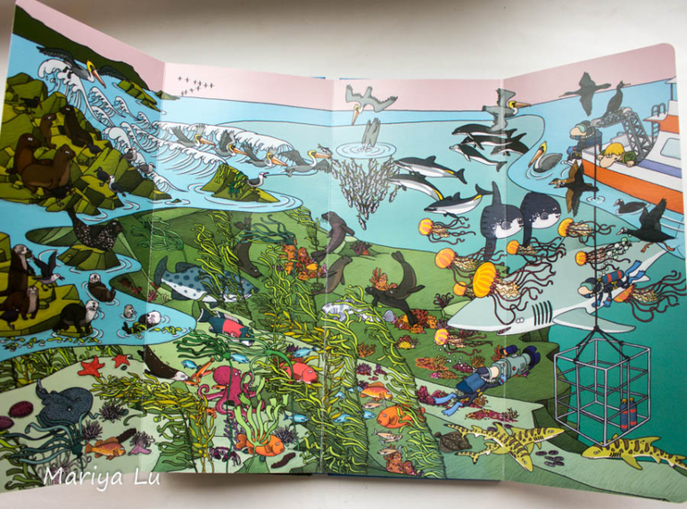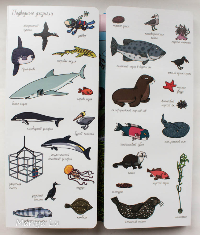 На страницах книги показаны водные эко-системы : на полюсах, коралловый риф, голубая бездна и водные джунгли ,также вошел разворот об истребленных животных.