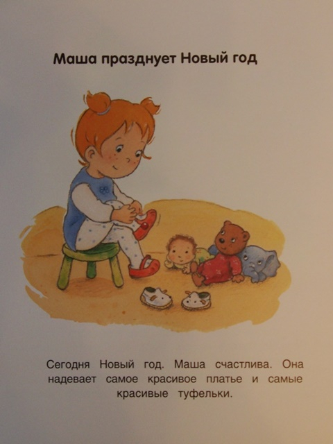 2. Небольшая тоненькая книжка для малышей про девочку Машу, которая празднует Новый год. Рекомендую иметь такую книгу. Она передает в легкой, понятной малышам форме, все настроение Нового года. Маша выбирает, что бы ей одеть, наряжает елку, принимает гостей, рассматривает подарки.... Вообщем, на нескольких страницах переданы все волнения подготовки к этому волшебному празднику и то веселье, которое оно приносит.