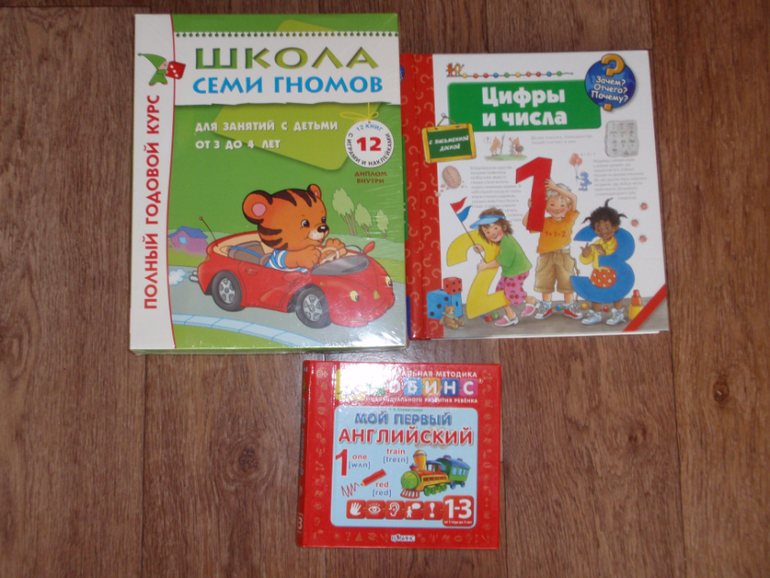 Для развития, пока активно используем 2 серии Это может ваш малыш и Школу 7 гномов с 2 до 3 лет... вот решила разнообразить и прикупить на пробу ещё парочку... сразу скажу, что Вгорошек откровенно разочаровал (хотя друзьям подарила одну книгу из данной серии - они в восторге, ребенок того же возраста), а серия Кумон очень приглянулась (и задания, и формат, и качество), но пока не опробовала с дочкой. Английский, комплект школы 7 гномов и цифры с числами точно на вырост.