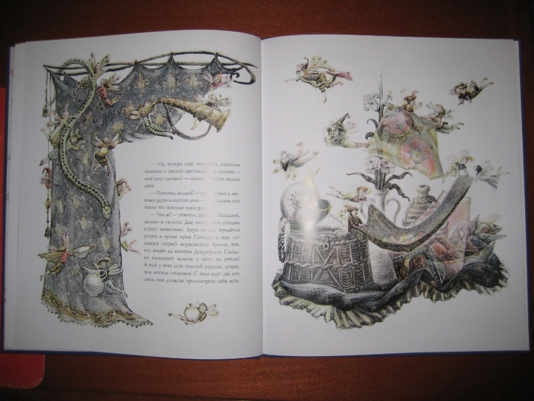 И вот, как только книгу привезли, мы тут же принялись ее читать. А дело было вечером, перед сном. Если бы речь шла о сказках братьев Гримм, я бы проявила уж всенепременно осторожность и выявила бы предварительно сказки о каких-нибудь покойниках, гробах и т.д. Но Андерсен... Например, старая лесная дева перечисляет приглашенных на праздник: "А кроме того, я считаю, нельзя обойти могильную свинью, трехногую лошадь без головы и гнома-церквушника". "Какую-какую лошадь?" - переспросил удивленный ребенок. "Кухня ломилась от припасов; жарили на вертелах лягушек, начиняли репейником шкурки ужей, готовили салаты из поганок с лягушатиной, мочеными мышиными мордами и цикутой. Пиво привезли от болотницы, а игристое вино с селитрой доставили прямо из кладбищенских склепов. Все готовилось по лучшим рецептам. На десерт собирались подать ржавые гвозди и битое стекло от церковных окон". При упоминании ржавых гвоздей и битого стекла ребенок издал недоверчивый смешок.