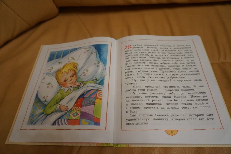 4) Приключения машинки Кнопки Майшоп Это для тех, у кого ребенок засыпает под сказки, добрые легкие рассказы, предисловие: мама с сыном укладываются спать и сын просит ее придумать сказки про добрую машинку. У нас еще совпала с переходом в свою кроватку. Первые 3 истории слушает, дальше сложновато. Кстати, для мам автолюбителей: Айболит, Мойдодыр очень легко переделываются на Автомеханик и Мойдодыр для машинки))) Очень меня выручало перед сном рассказывала, под них только и засыпал! Слушать ничего не хотел кроме своих брррр (наше любимое слово - обозначающее транспорт). Период К.И, Чуковского был у нас примерно 1,3-1,6 лет, теперь даже про Автомеханика не хочет слушать - надоело.