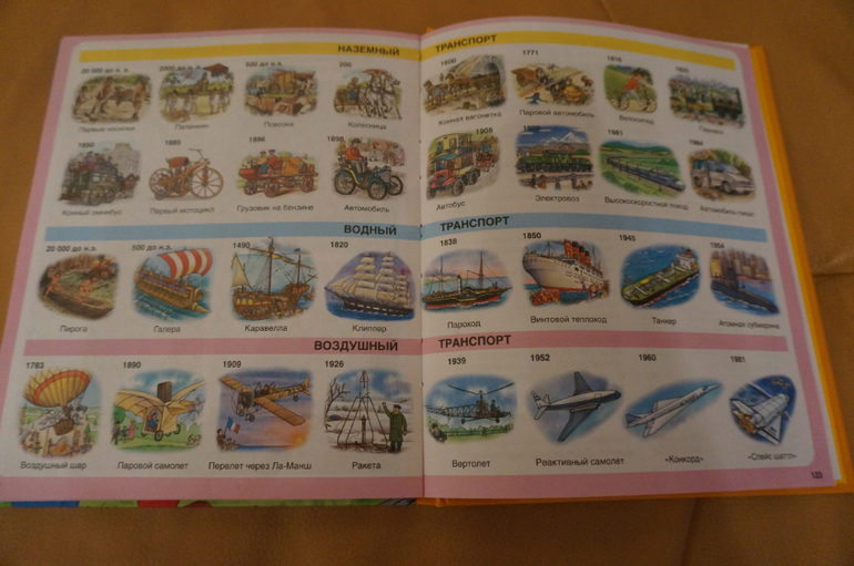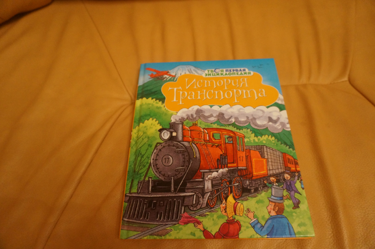 5) История Транспорта Твоя первая энциклопедия Майшоп, купила такую про животных Майшоп, не ожидала, но сыну понравилось, там все животные: мама, папа, я, (петух, курица, цыпленок) решила попробовать транспорт, пошла хорошо, не скажу, чтобы ах, но рассматривает, слушает, комментирует, для энциклопедии очень даже неплохо.