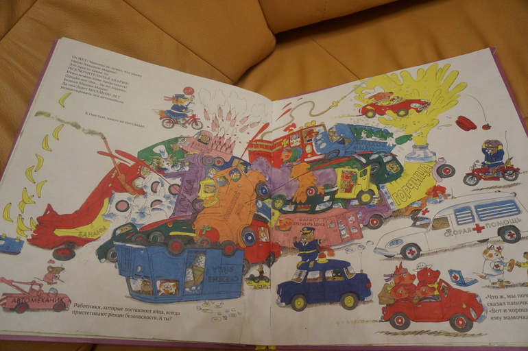 1) Самая-самая замечательная книга про машинки, так и называется про машинки, автор ее Ричард Скарри. Майшоп Купили мы ее в год и три месяца, первые полгода читали каждый день, да и сейчас она не потеряла актуальности, раз в неделю попадает в число любимчиков! По ней учили цвета (найди все красные машинки), размеры (какая машина самая маленькая), как говорят водители (собачки, кошечки, мышки), где спрятался золотой жук, у кого насколько хватит фантазии. Такая книжка должна быть у каждого мальчишки! Купили также город добрых дел, Майшоп, отличная книжка про профессии, читает, но эту любит больше!!!