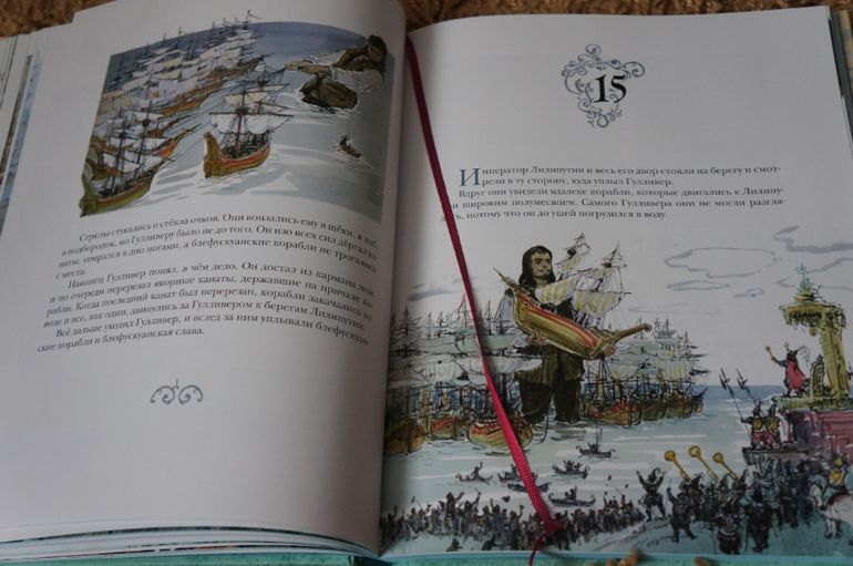 Для нас эта книга стала долгожданной и самой любимой. Книга включает две части:"Путешествие в Лилипутию" и "Путешествие в Бробдингнег". Текст в классическом переводе Тамары Габбе.