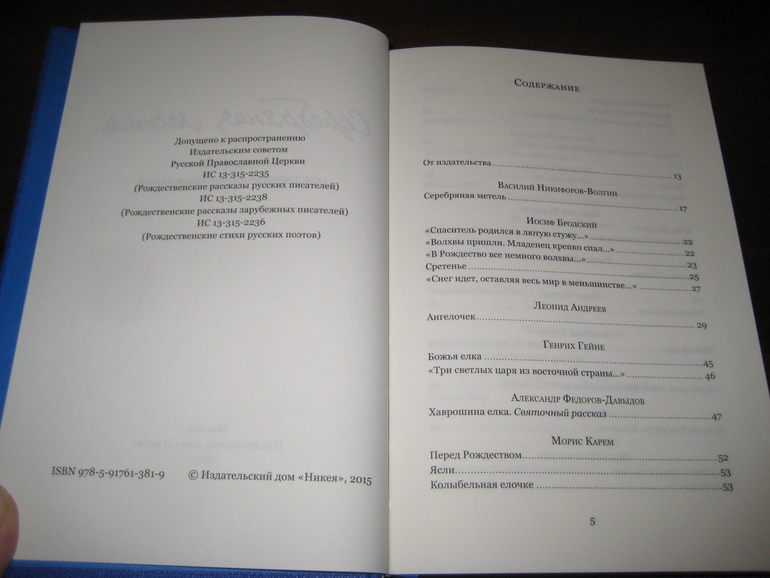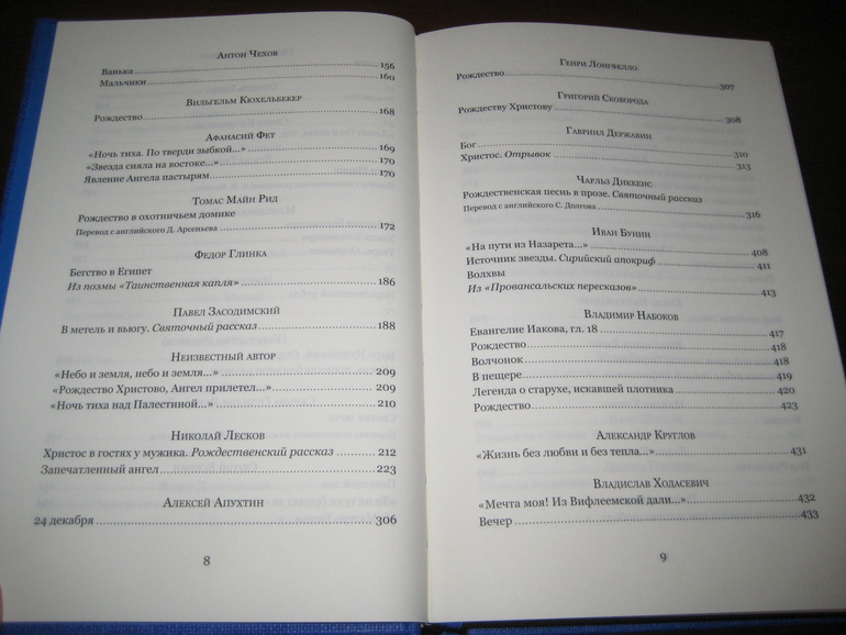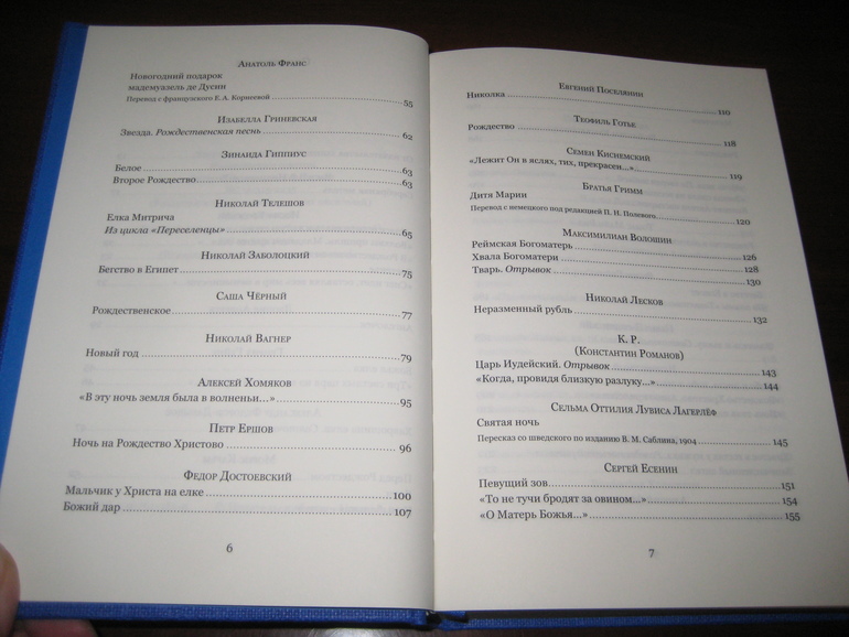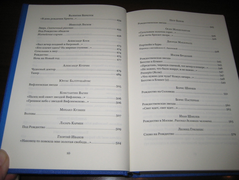 А самым привлекательным для меня при заказе было, разумеется, содержание сборника. Не зря же она называется: "Большая книга рождественских произведений"! Она действительно большая, в ней 592 страницы! Только перечень включенных туда произведений занял несколько разворотов:
