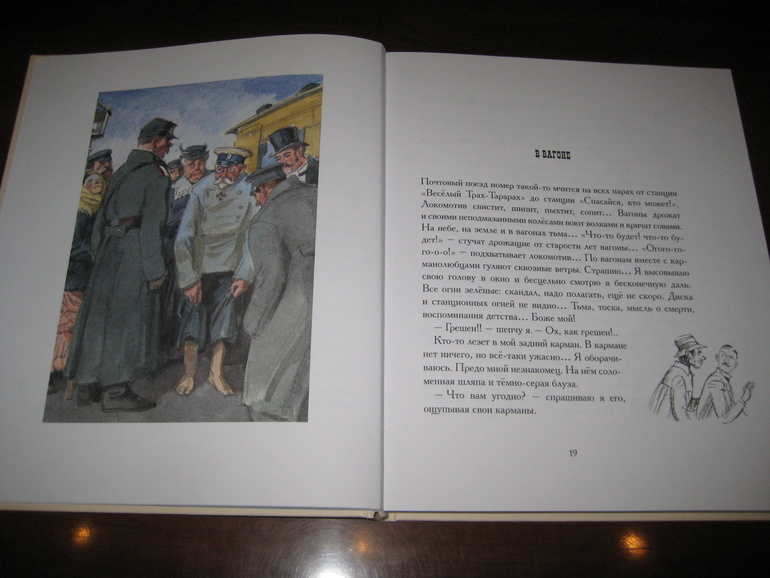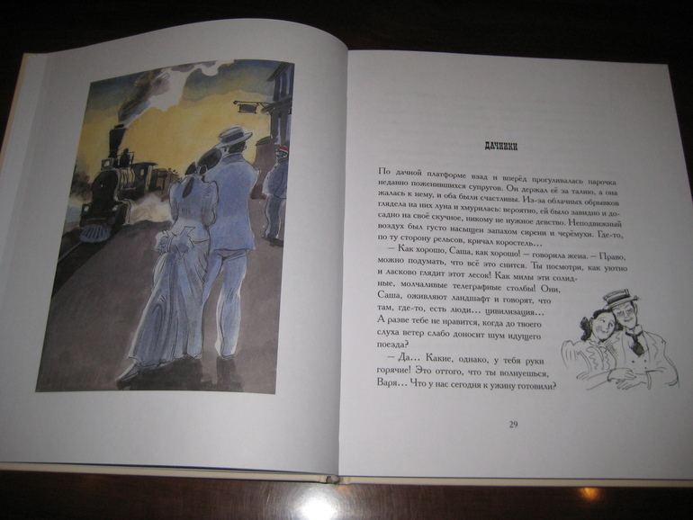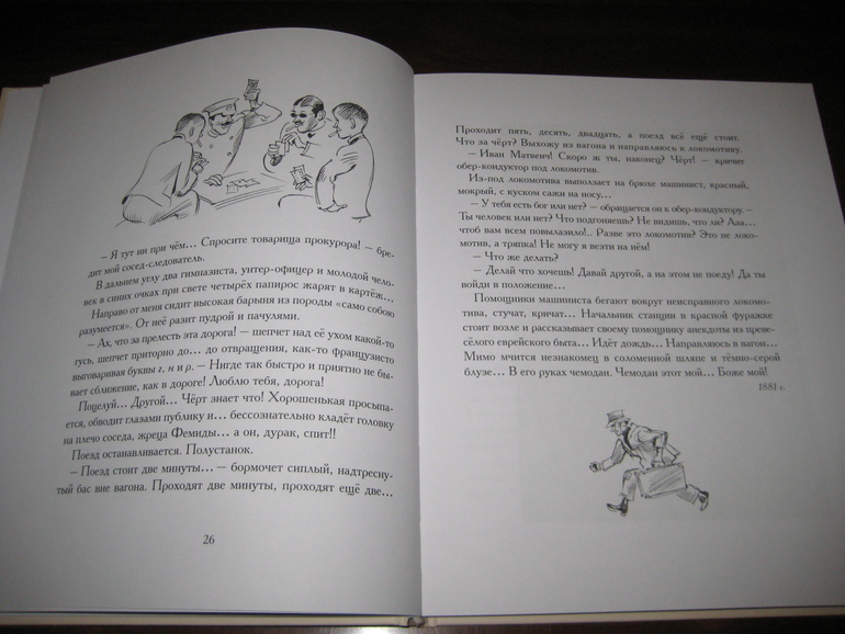 ...аж глаза протерла! Но, перевернув страницу, тут же поняла, что это не случайность, это общий замысел, КОНЦЕПЦИЯ! Очень интересный прием оформления именно ранних рассказов Чехова, в которых больше юмора, чем глубокой печали: