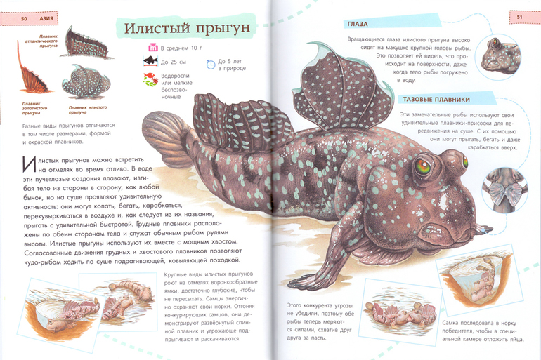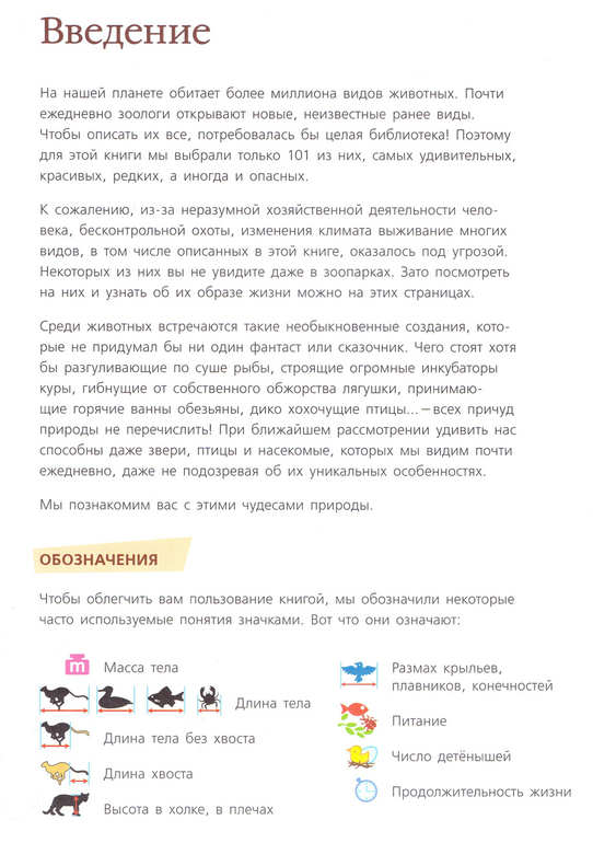 В энциклопедии представлено 101 животное - есть хорошо знакомые детям слоны, тигры, жираф, верблюд и бегемот, панда и коала. И много мало известных детям животных)