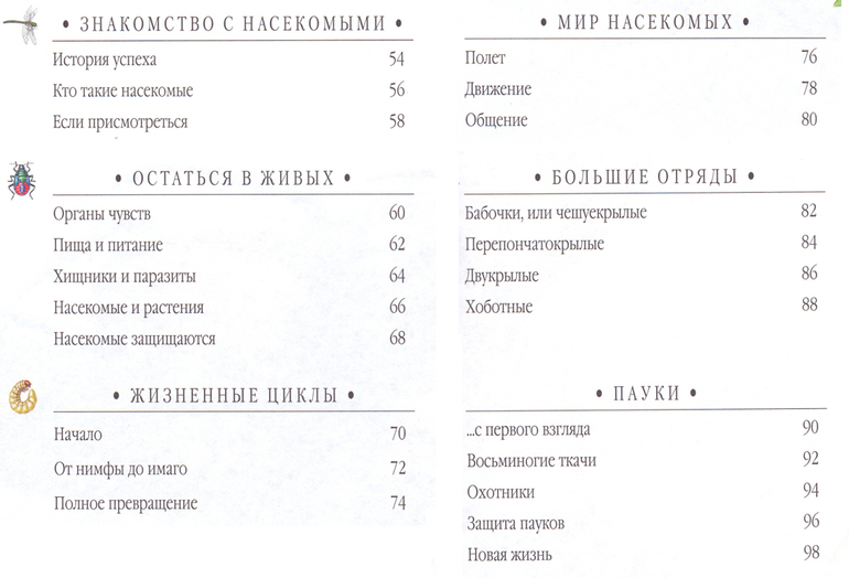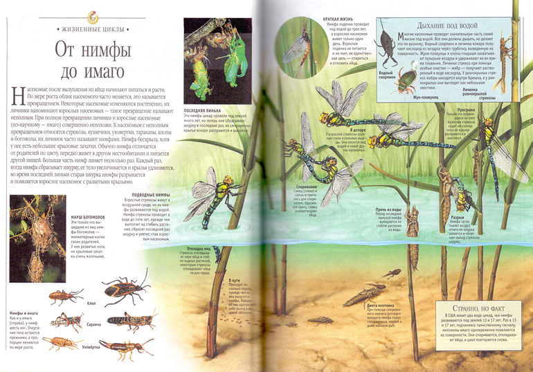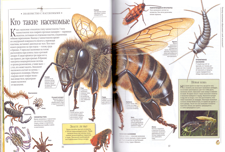 Раздел Насекомые и пауки - 45 страниц, вроде мало - но в эти страницы уместилось столько информации! Я пока писала этот отзыв - на две недели почти зависла с этой энциклопедий - очень увлекательно!