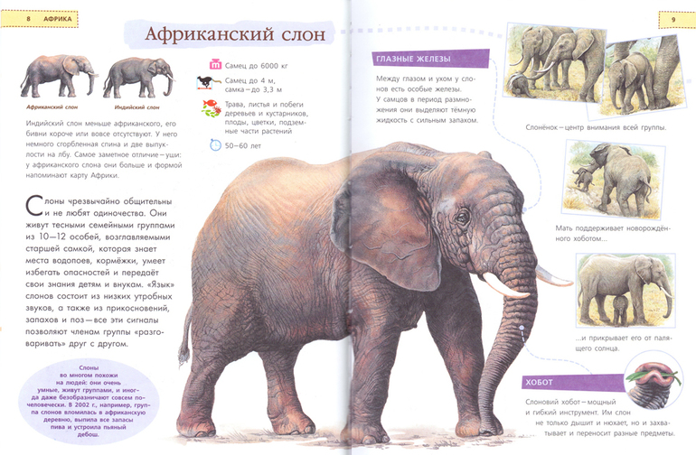 Можно наглядно увидеть различия между африканским и индийским слоном![]()