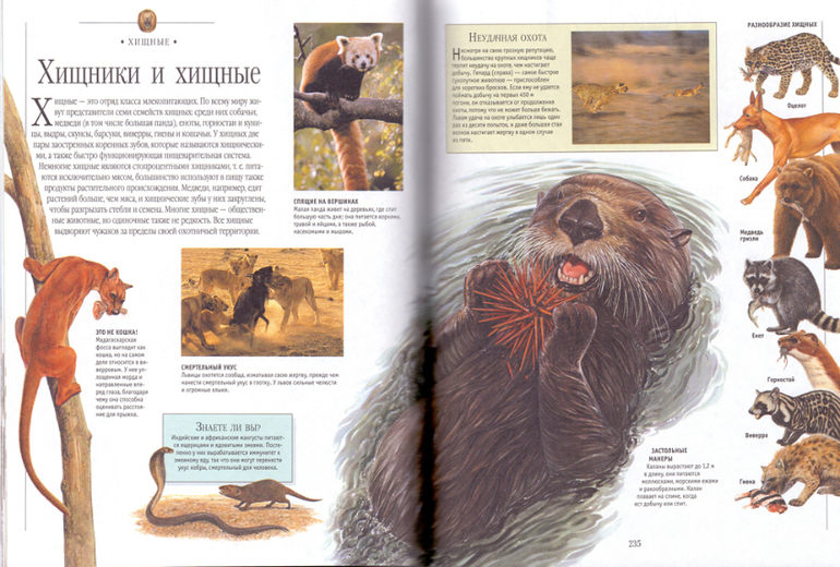 А вот старшему сыну ( 8 лет) - эта энциклопедия как раз по возрасту, и очень подойдет для расширения кругозора. Сведения о животных даны кратко и понятно для младшего школьника. Для школьного предмета Окружающий мир - отличная книга для доп. чтения. Шрифт в книге достаточно крупный.![]()