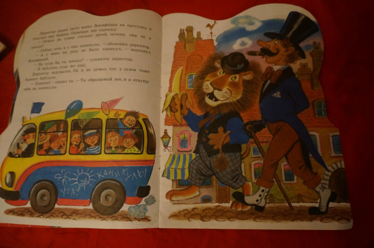 Каникулы Бонифация Федор Хитрук Майшоп Купили также в 1,5 года, читали, рассматривали, одна из любимых на тот период книг, всем мне нравится эта книжка, дает первое понятия цирка и каникул, есть в ней даже транспорт: автобус и пароход!