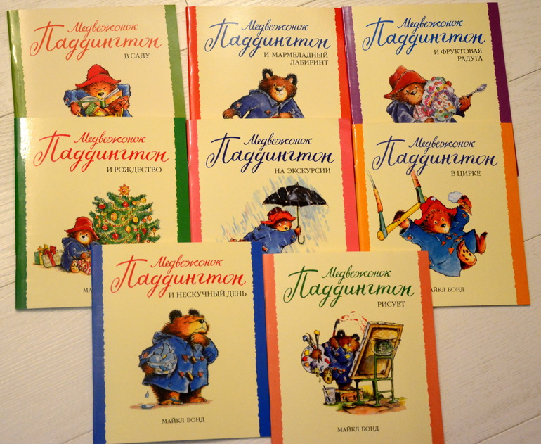 Книжки о медвежонке Паддингтоне мне очень нравятся. В них есть все: смешная история, немного текста, красочные иллюстрации, маленький формат (который удобно брать с собой в дорогу), невысокая цена. Пока Ксю еще чуть-чуть рановато. Они лежат и ждут своего часа, но некоторые книжки она уже затаскала. Смотрит иллюстрации и что-то бормочет на своем, смеется:) Подойдет в дальнейшем и для первого самостоятельного чтения: крупный шрифт
