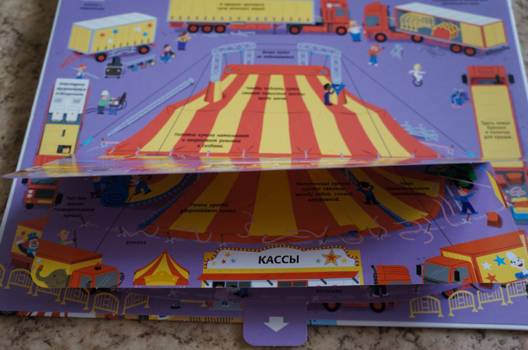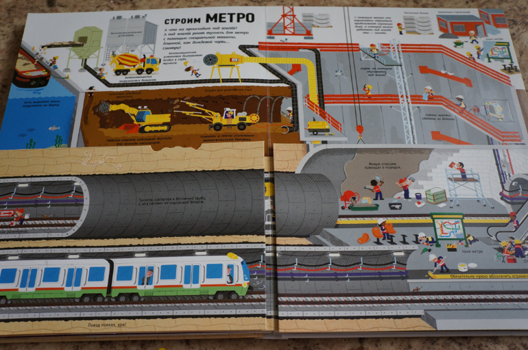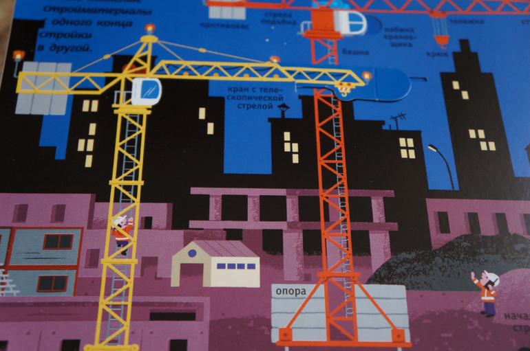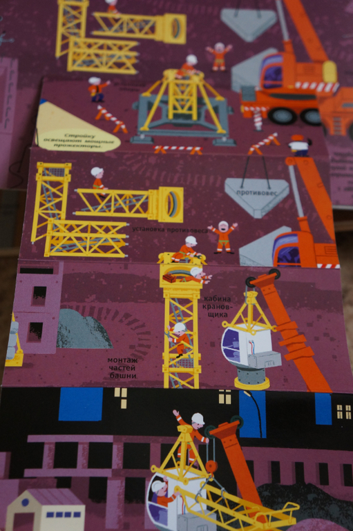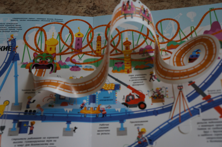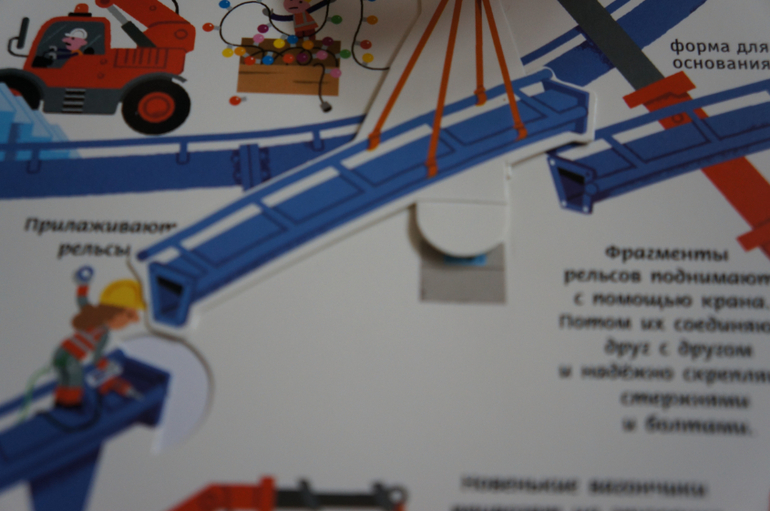 Думаю, не каждый взрослый знает как собирается строительный кран или строятся американские горки, а дети у которых есть эта чудесная книга знают и наглядно представляют весь процесс.