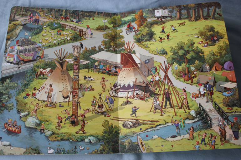 Мне особенно, в плане иллюстраций, нравится разворот с лесным озером... Да и вообще, здесь масса интересных изображений и новых слов, когда еще встретится деревня индейцев, вигвам и повод поговорить об этом? Если только не при просмотре мультика о каникулах в Простоквашино :)