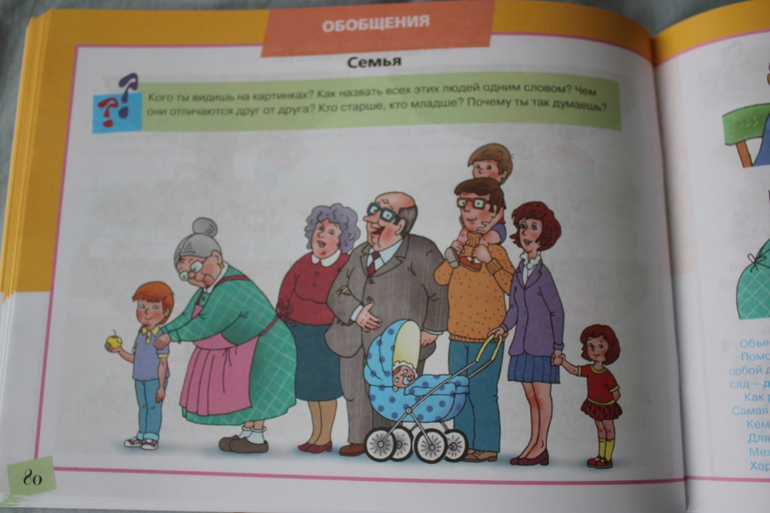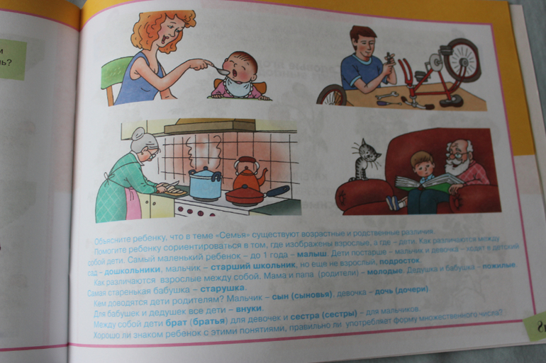 Здесь мне понравилась подача материала, как предоставлять информацию ребенку о членах семьи и кто кому кем является. Сразу вспомнила детский анекдот: "Летят два крокодила - один зеленый, другой в крапинку. Как зовут отца Николая Ивановича?" :)) что-то из этой серии есть...