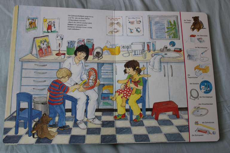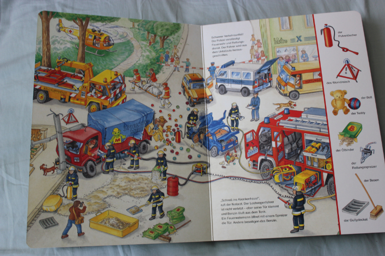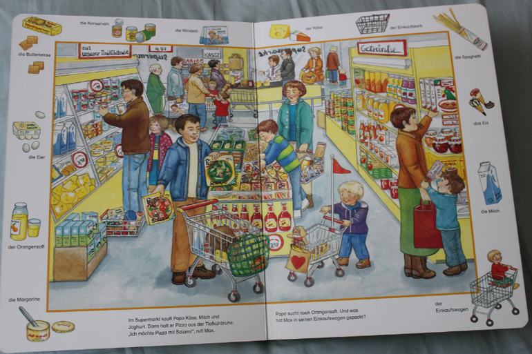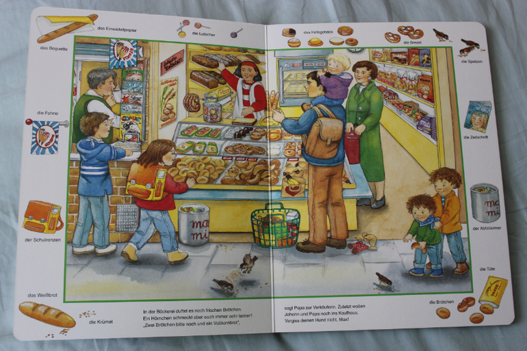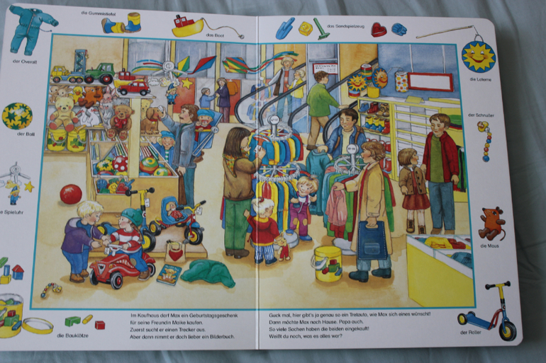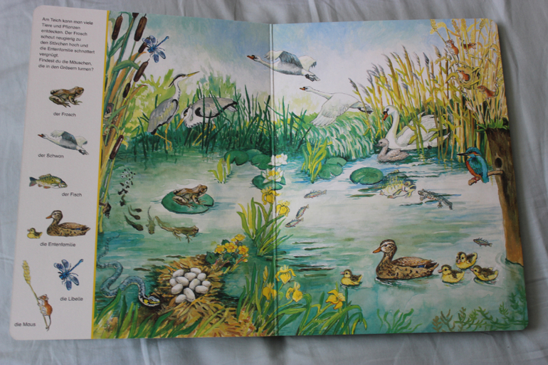 Очень толстенький, много разворотов на разную тематику вперемешку (и природа, и город), жаль, что я не знаю немецкого языка, но с другой стороны, есть повод его выучить :) а можно еще таким образом не только немецкий учить, но и английский, и мой любимый испанский, если называть предметы, которые необходимо найти на других языках. Вот сколько у меня идей с этой книгой.