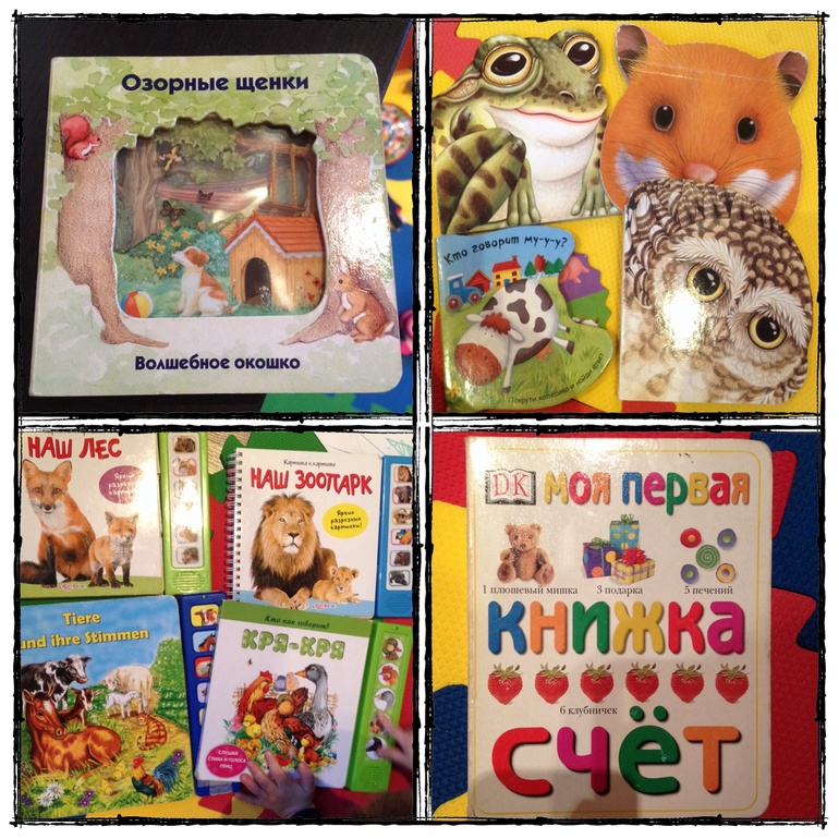 ))) пару раз до половины вытаскивали) но я эти книги убрала сейчас, там страницы разрезаны на три части, типа паззлы. Но рано еще, получается половина одного животного, половина другого. Нам бы настоящий вид сейчас запомнить, а путаницу вносить рановато) она еще не понимает, что их надо из частей собирать)