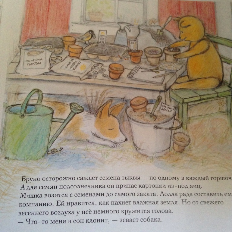 В общем приобретение оценила на пять с минусом. Минус есть, но в этом виновата не книга, а то, что нам она уже простовата в плане текста. На 2-3 года отлично. Напоминает повествование в стиле Кротика. Простые короткие предложения, мало описаний с прилагательными. Тем не менее сын расположен к книге, он любитель мишек, ежиков)