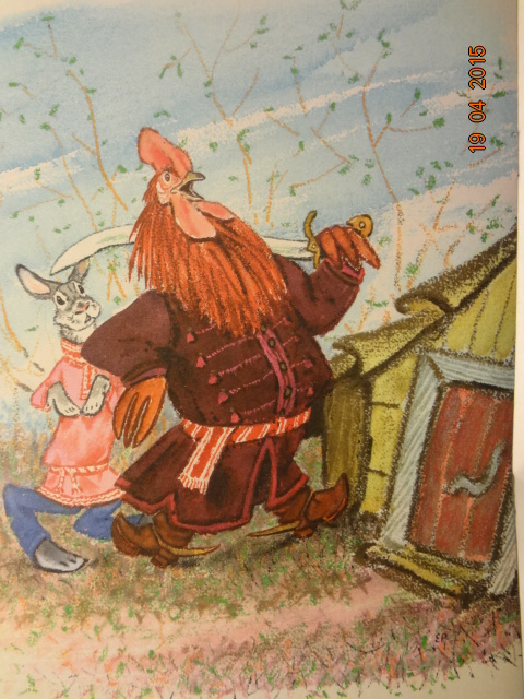 И еще одно наблюдение. Дети ещё те консерваторы! "Заюшкину избушку" впервые мы читали в другой обработке, сказка по другому начиналась. Когда была куплена эта книга, Андрюша долго пытался исправлять меня по ходу текста. Поэтому начало сказки и говорила по памяти из другого издания, а остальное отсюда. Сын сам нес мне эту книгу конечно же из-за иллюстраций!