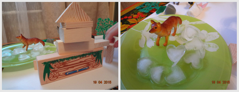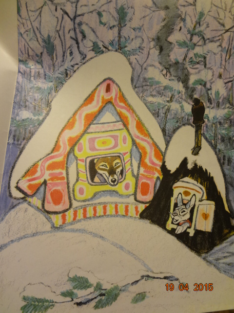 Потом Андрюша построил для зайца лубяную избушку, а я для лисы ледяную.