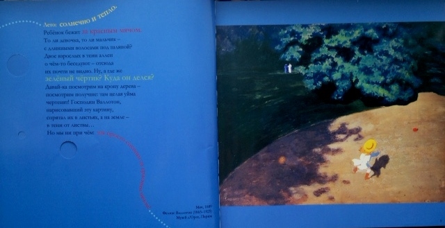В наше время послание и значение произведений искусства прошлых веков перестает быть понятным даже для взрослого человека, а настоящее понимание живописи доступно не каждому, а уж тем более ребенку. Но мы можем передать эмоции и настроение, игру света, сочетание цветов, это становится возможным с книгами Марии Селье. Знакомство с изобразительным искусством превращается в игру на фоне картин, оно не статично и не скучно. В динамичной игре родитель вместе с ребенком может рассмотреть отдельные элементы картин, сконцентрировать на них внимание, и что немаловажно, удержать внимание ребенка.