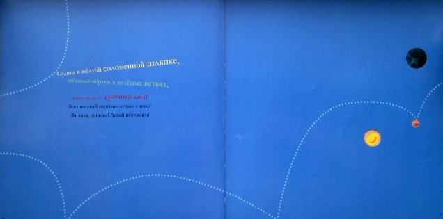 Все стихи так и заканчиваются фразой: «Но мы ни при чем: Мы просто спешим за красным мячом!», и мяч ведет нас через всю книгу, как будто перепрыгивая со страницы на страницу.