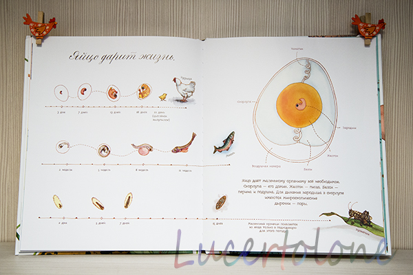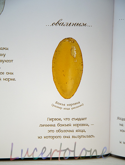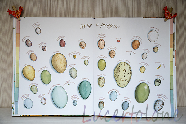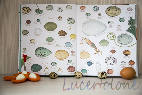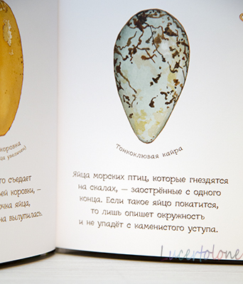То, что "арт", вы уже поняли по заглавной фотографии с изображением самых разных яиц. Авторы оригинальны от и до, касается это и шрифта. Если подписи к картинками достаточно четкие, хотя кому-то могут показаться мелковатыми, то некоторые фразы и определения столь витиеваты, что их хочется не прочитать, а прошептать почему-то =) не могу объяснить почему, но я читаю ребенку эти книги каким-то не своим таинственным голосом )))