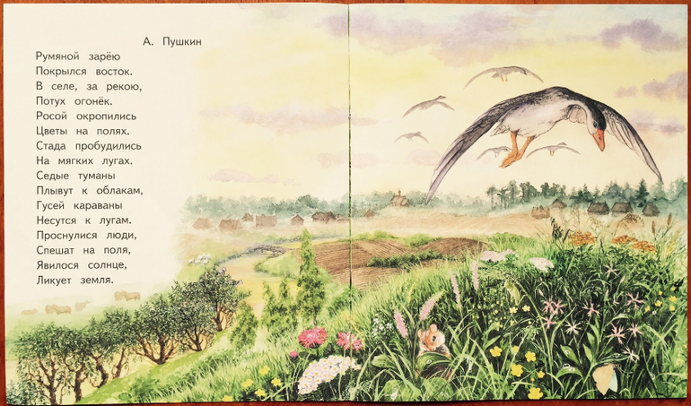 Мягкая обложка, 8 листов в каждой книжке, крепление - скрепка. Бумага офсетная, плотная, белая. Удачный шрифт. Рисунки карандашно-акварельные, выполнены в приятной цветовой гамме, такие реалистичные, - здесь и пейзажи родной природы, и звери-птицы. Цветопередача очень хорошая.
