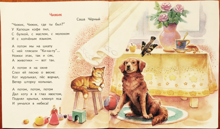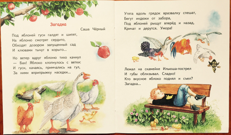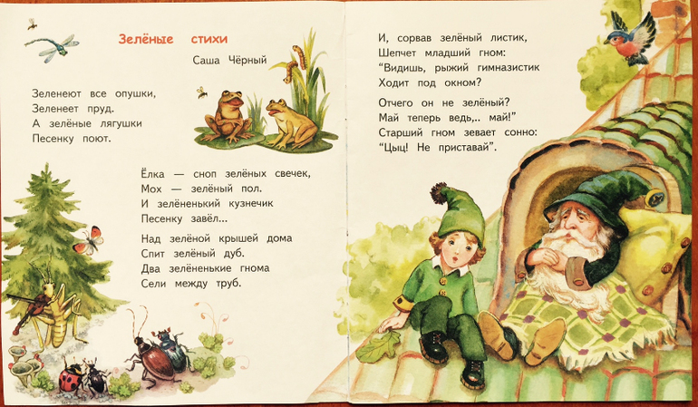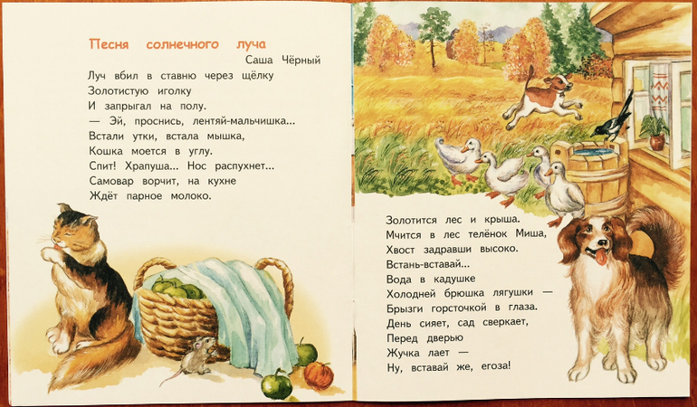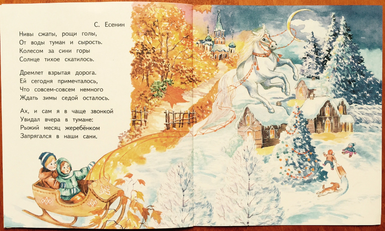 В сборники вошли стихи известнейших русских поэтов - А.Пушкина, А.Фета, Ф.Тютчева, А.Блока, С.Черного, И.Бунина, С.Есенина, А.Плещеева. Кстати, составлением сборника, видимо, занимался большой любитель Саши Черного, - его стихов в этих книжках больше всего. Иногда даже слишком много, - в "Белой сказке" кроме Саши Черного стихи только двух поэтов. Непонятно, почему в зимний сборник не попало, например, такое чудесное стихотворение, как "Мороз и солнце" Пушкина.