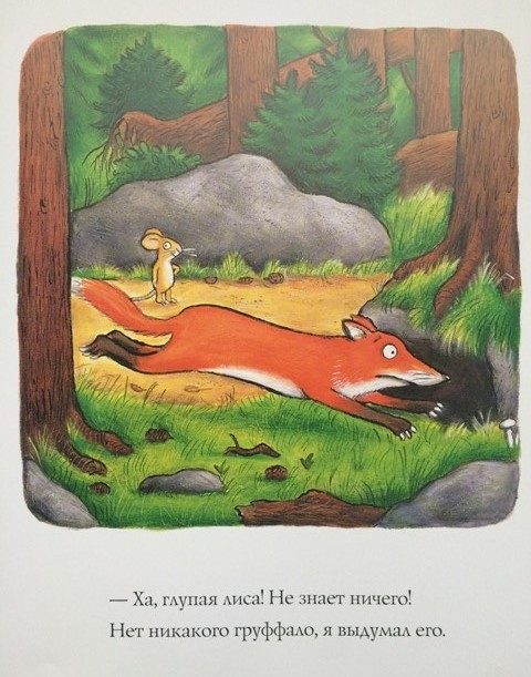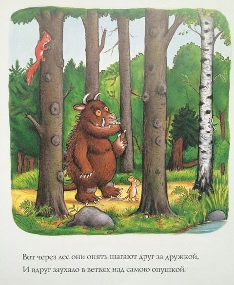 Но хитрый мышонок выдумывает страшного-престрашного зверя - Груффало, которого сам же потом и встречает в лесу.