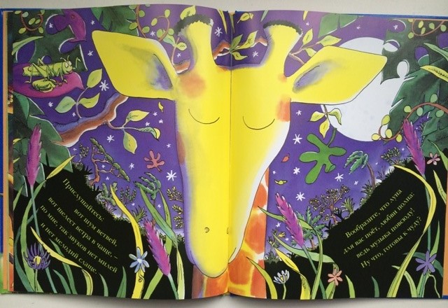 Впервые я услышала эту книгу в формате аудиосказки, когда Лёне было месяцев 8-9, помню как что-то готовила на кухне, Лёня сидел рядом в стульчике и чтобы малыш мой не скучал, я ткнула что-то случайно попавшее в мою ленту в контакте. Заслушались оба. Начала спрашивать Гугла и нашла к великой радости книгу в продаже. Тут же заказала. До сих пор жираф Джеральд наш любимец, не забываем про него никогда.